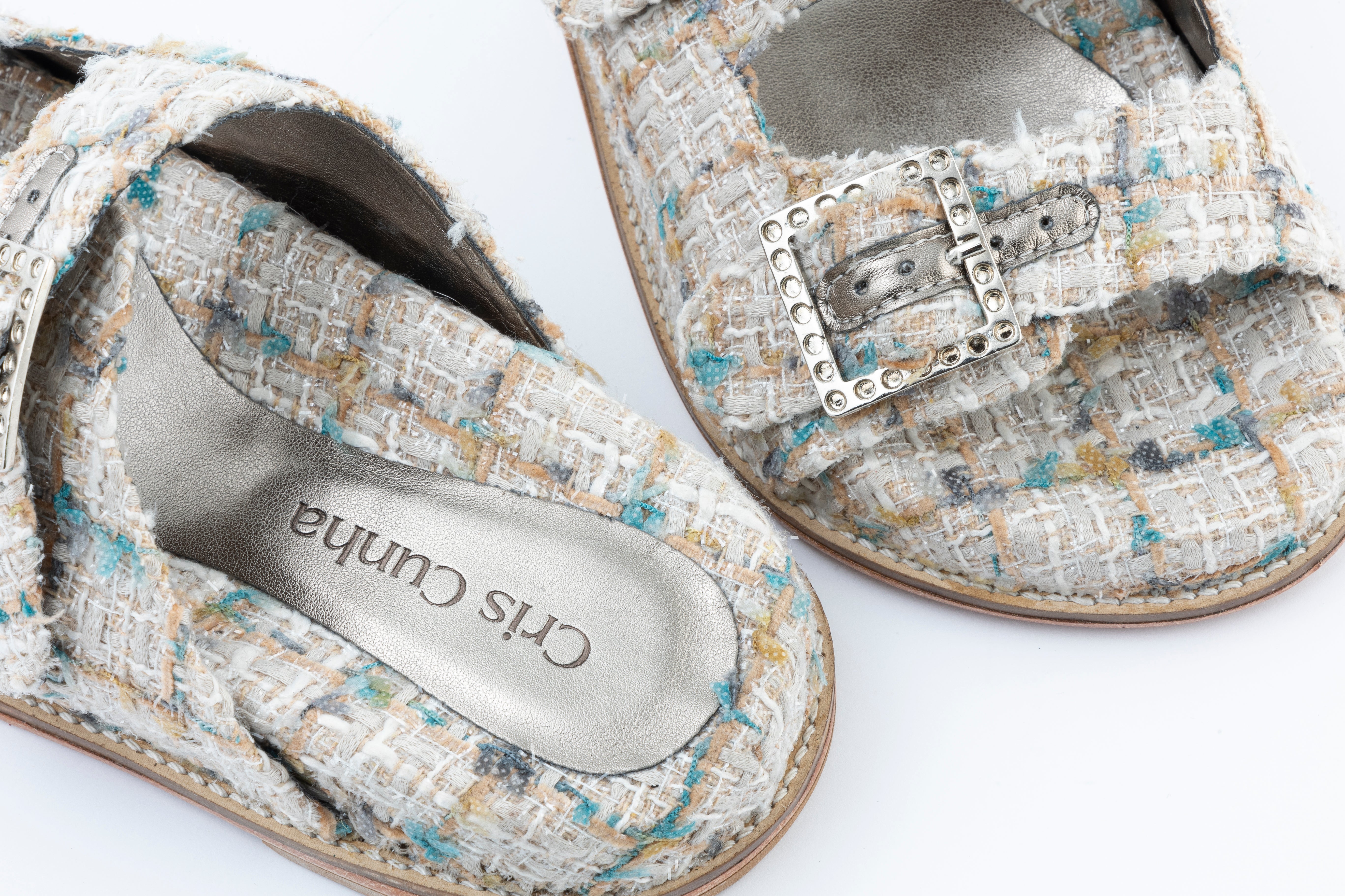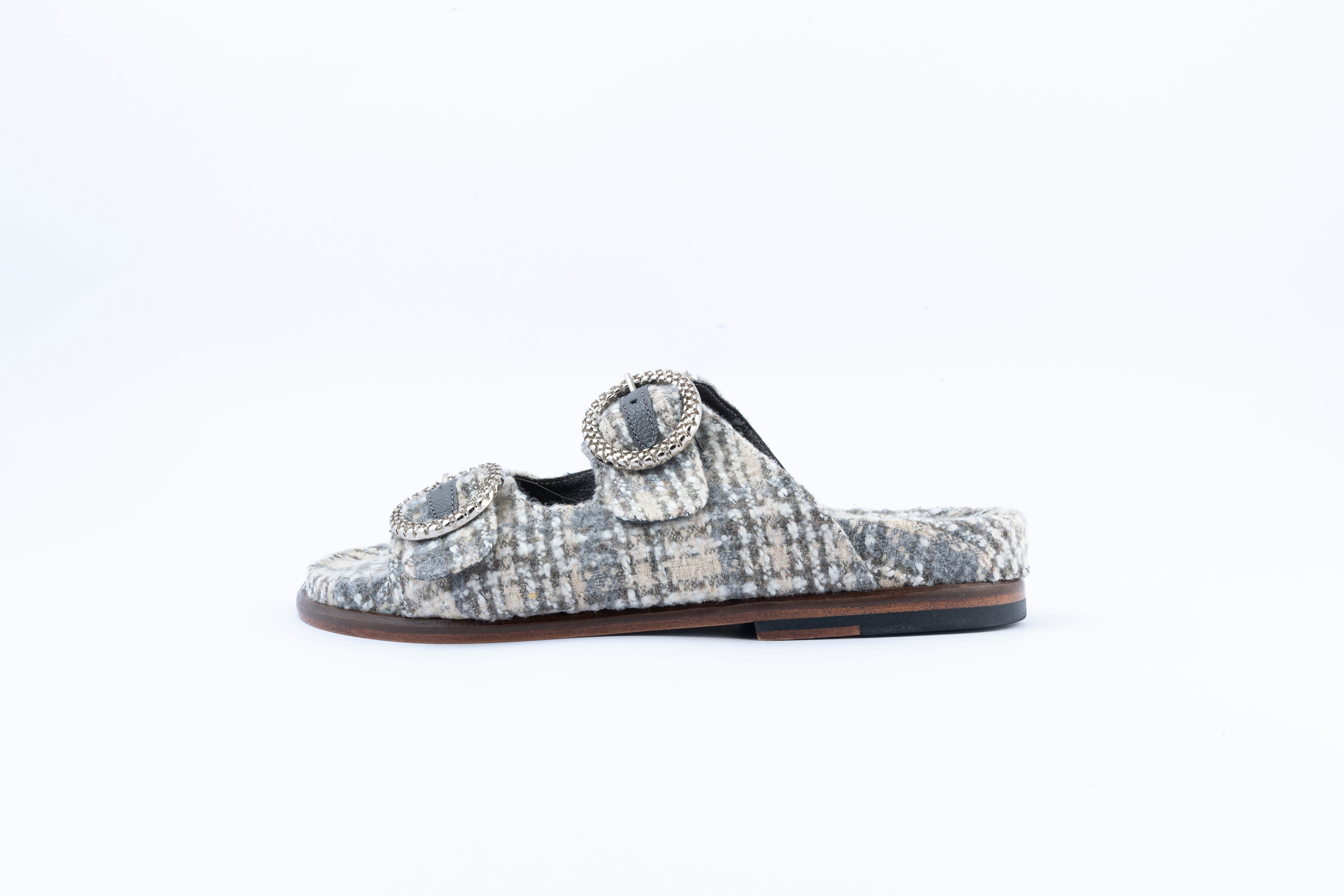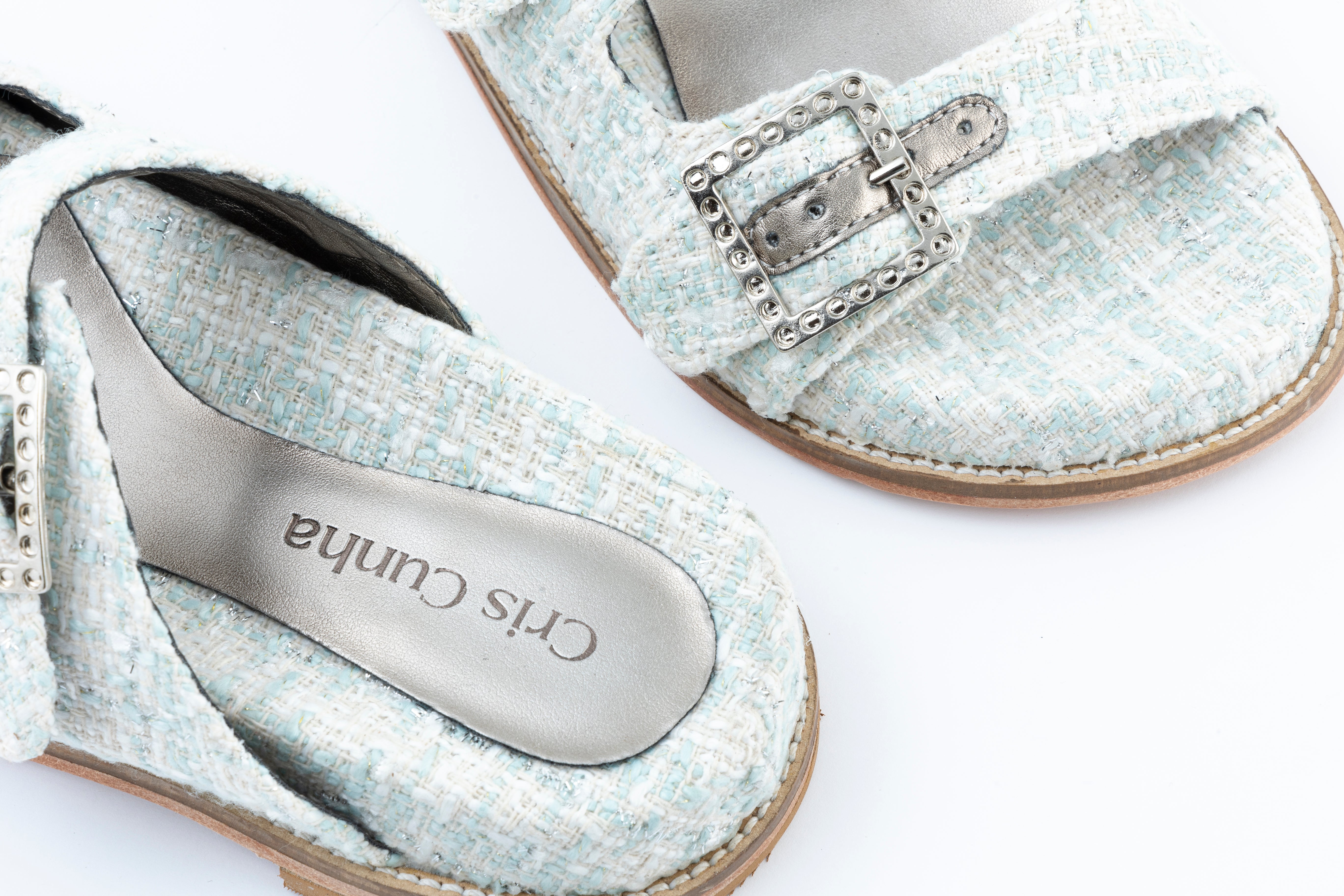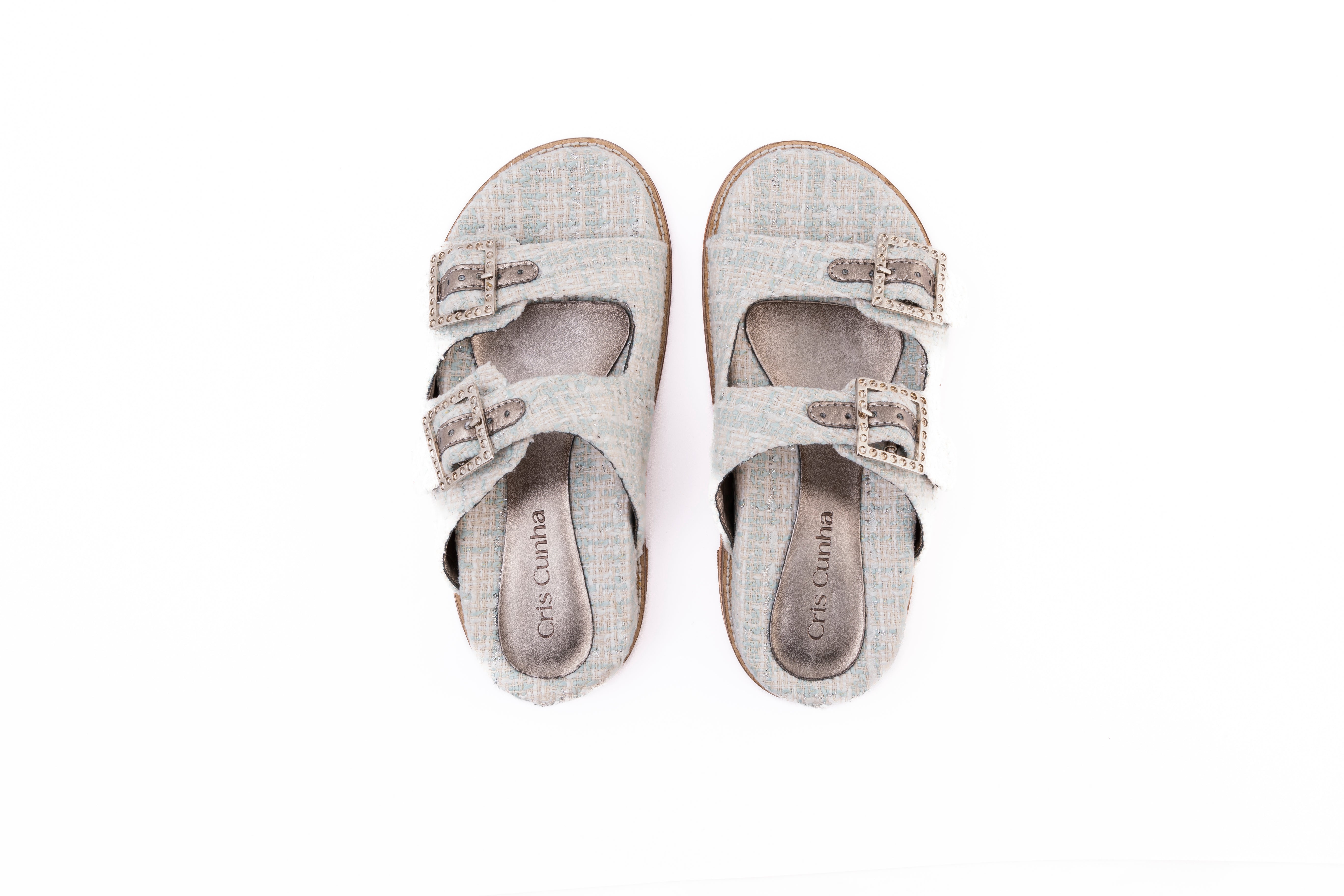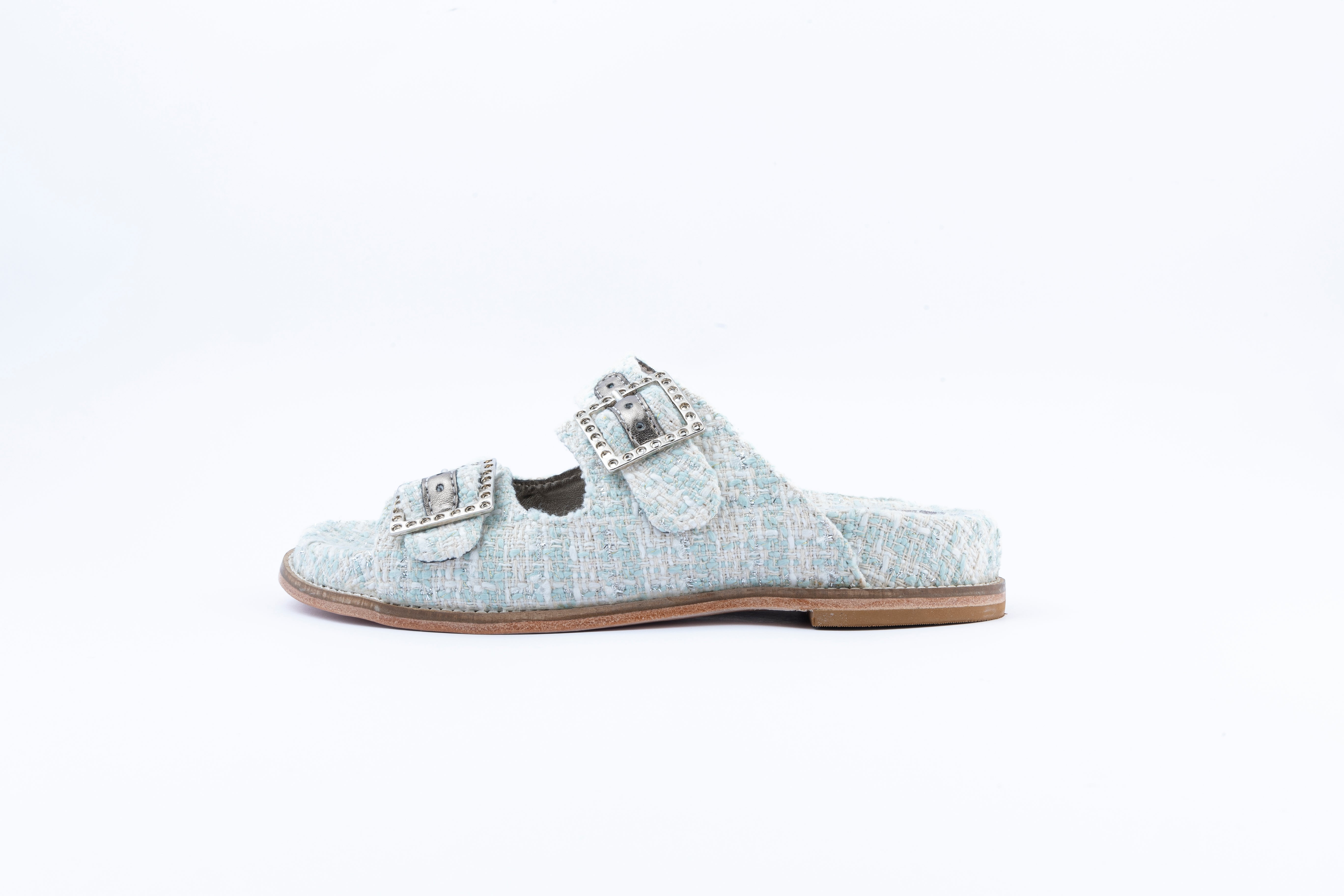 Papetes estilo Birkin toda forrada em Tweed importado, com detalhes em couro e fivela vintage prateada. Solado...