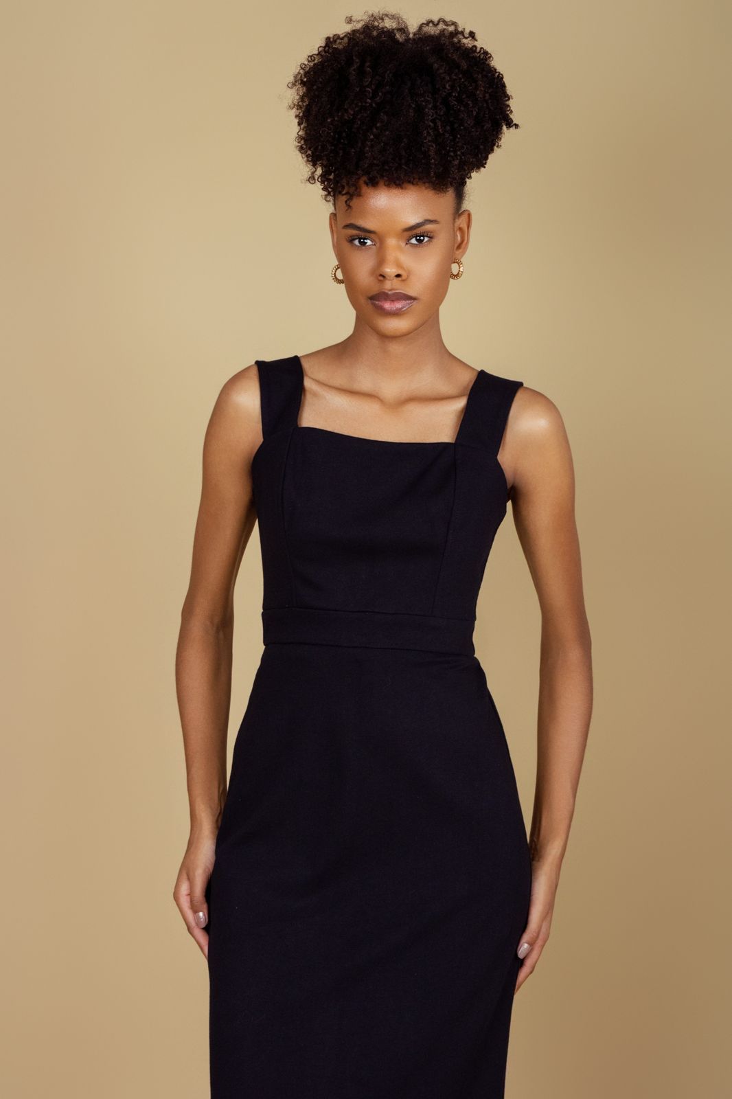 Atualizando os lisos o Vestido mídi em malha possui decote quadrado , SHAPE reto e fenda atrás...
